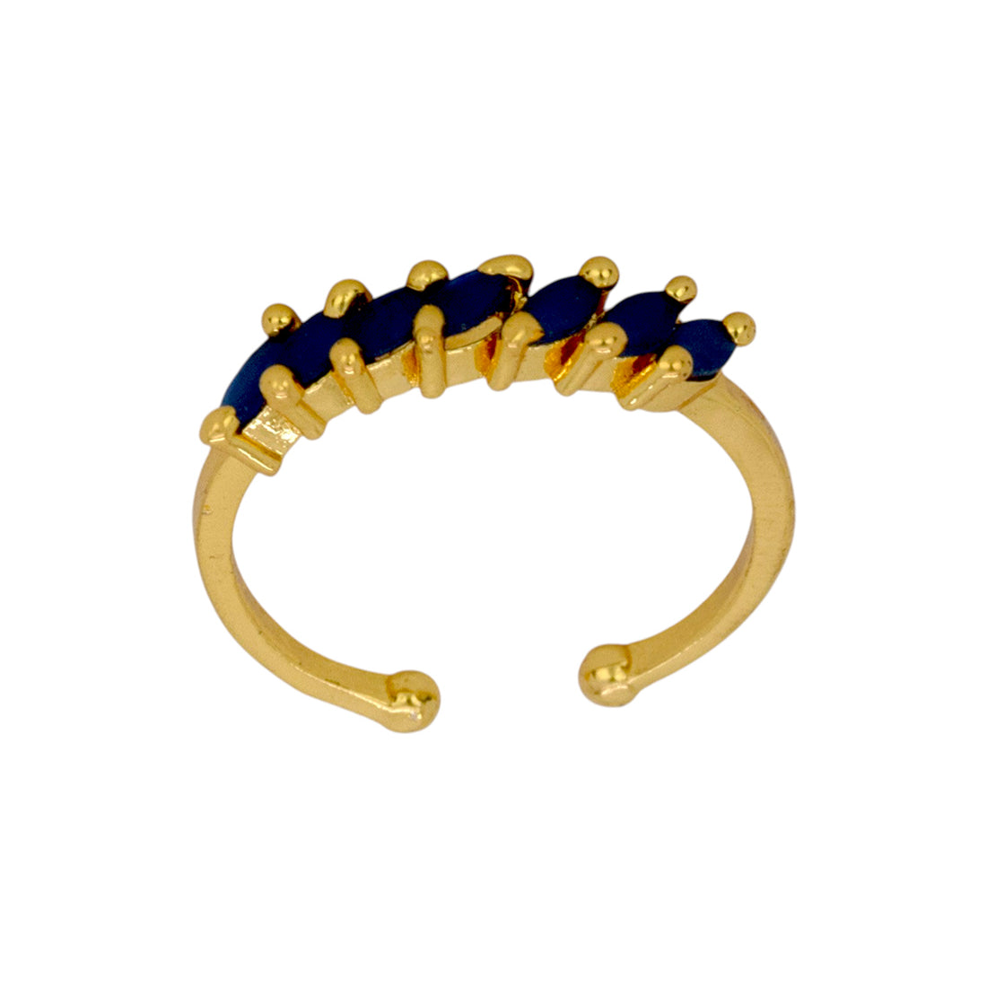 Elevate your style with this elegant Adjustable Gold Plated Ladies Stone Finger Ring, designed with dazzling marquise-cut stones. Available in two beautiful variants – Purple CZ and Blue Sapphire – this open ring adds a contemporary charm to traditional and western outfits. Its adjustable design ensures a perfect fit for any finger, making it a versatile accessory for daily wear or special occasions.