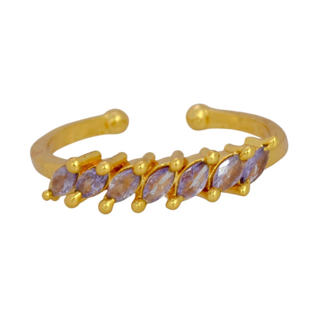 Versatile Adjustable Gold Plated Ladies Stone Finger Ring with stunning Purple CZ or Blue Sapphire stones. These adjustable fit rings are the perfect ring that makes your fingers elegant at parties, festive and wedding occasions.