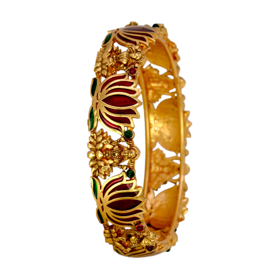 Antique Matte Finish Lakshmi Lotus Bangle for women– a perfect blend of heritage and elegance. This exquisite piece complements traditional Kerala sarees and ethnic wear beautifully. Ideal for special occasions, cultural celebrations, and festive gatherings.