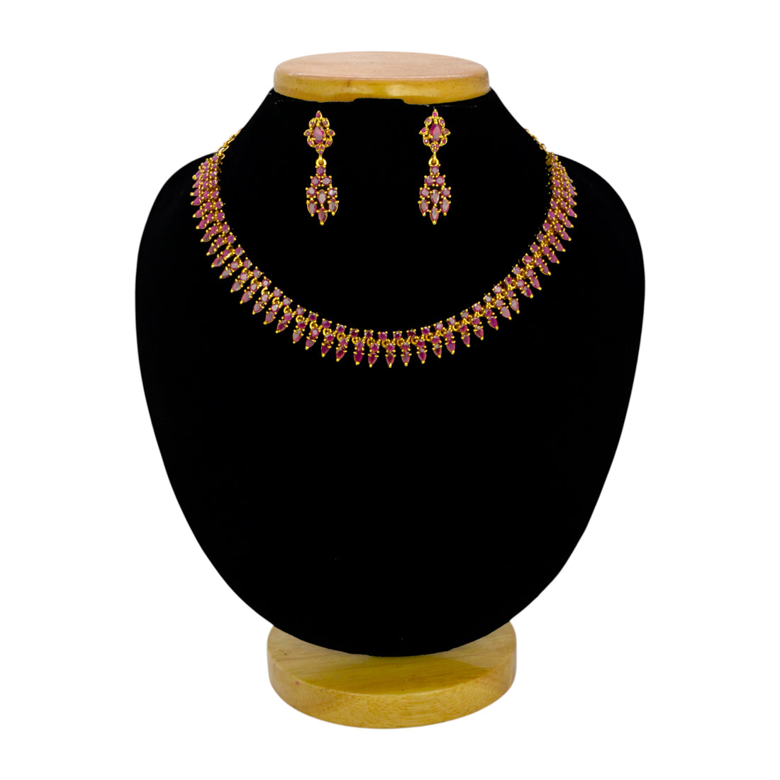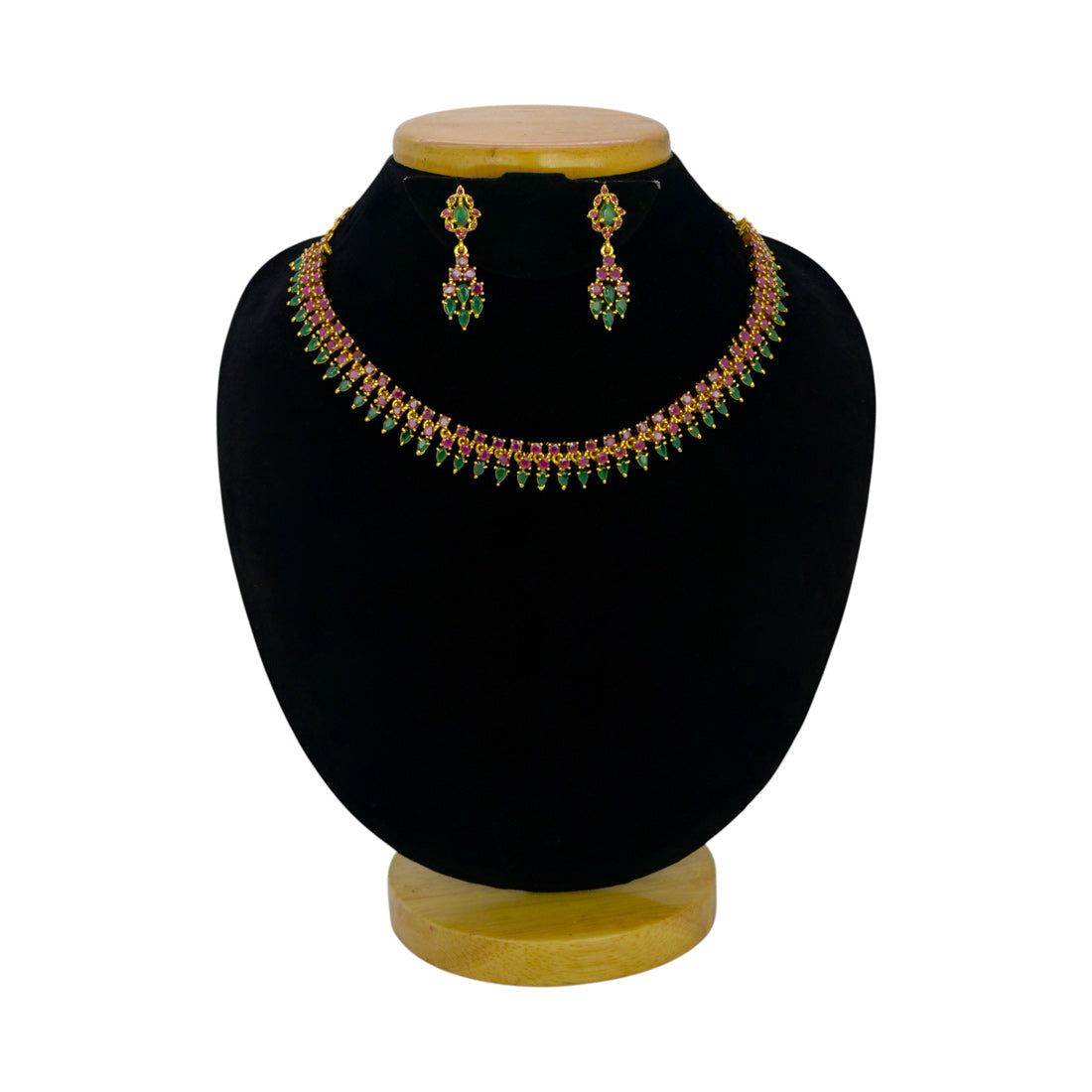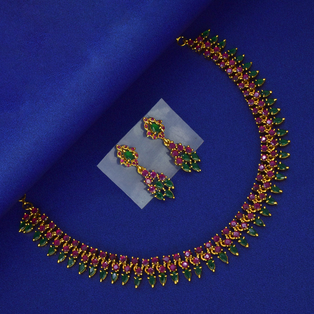 Add glamour to your festive and bridal looks with this stunning Antique Semi-Precious Stone Party wear Necklace Set. Antique gold finish, available in ruby-emerald, ruby, or white CZ stone variants. Perfect for weddings, festive wear, and parties. Elegant, exclusive, and skin-friendly fashion jewellery!