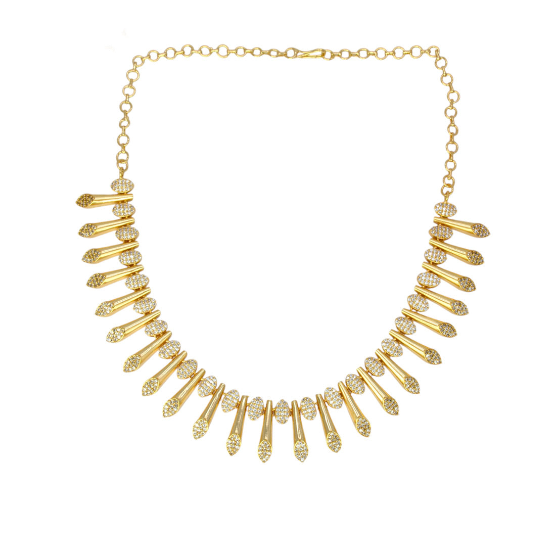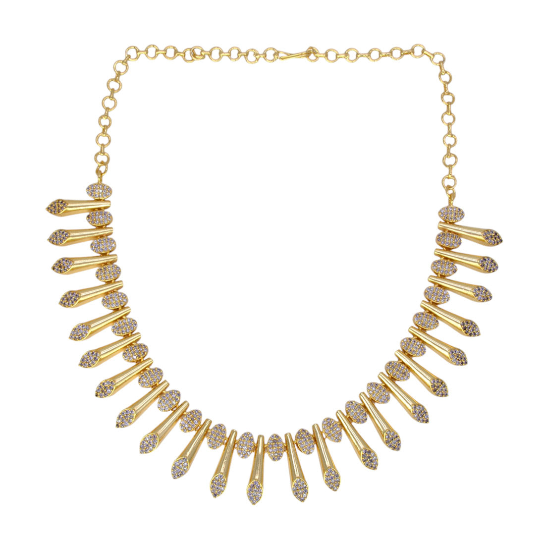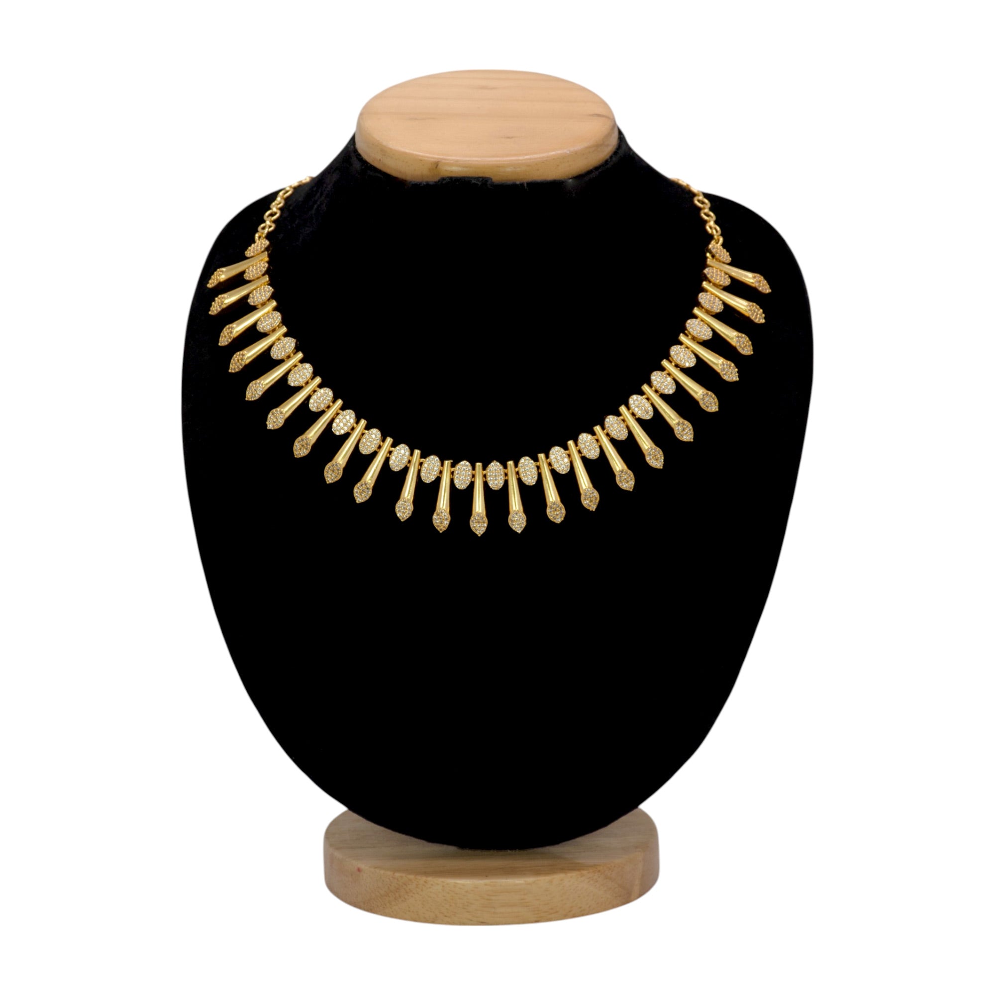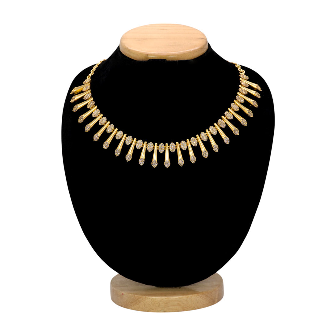 Enhance your ensemble and turn heads with this distinctive, glamorous Exquisite Gold Plated Spike Designer Stone Necklace that promises to be a cherished addition to any jewelry box.