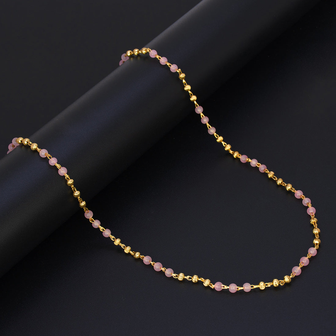 Add a graceful charm to your look with this exquisite golden beads pink pearl chain, featuring smooth pink pearls beautifully strung on a sleek gold-plated chain. This piece is simple yet stylish. Its lightweight and versatile design makes it perfect for daily wear, festive occasions, or as a thoughtful gift. A timeless jewelry piece that complements both ethnic and modern outfits.