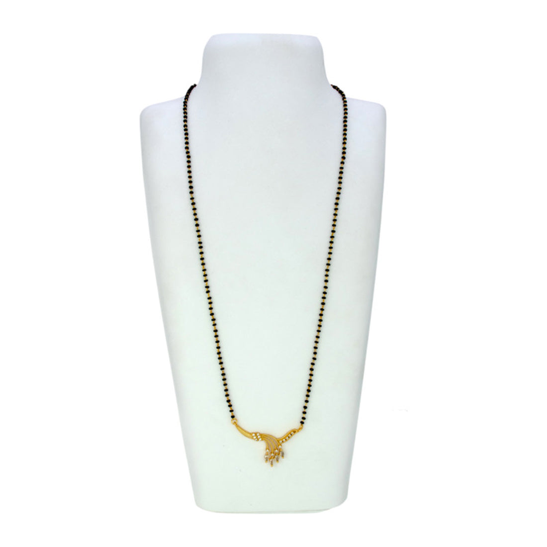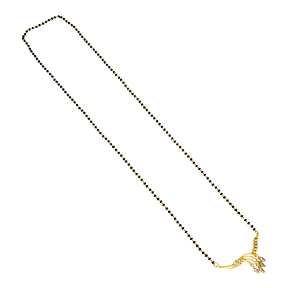 Elegant Gold Plated CZ Stone Pendant Karimani mala/Mangal Sutra for women. The gold finish cz pendant making it perfect for casual, festive occasions, weddings, or temple visits. Designed in a classic karimani mala (black beaded chain) style, this necklace beautifully blends tradition and elegance.