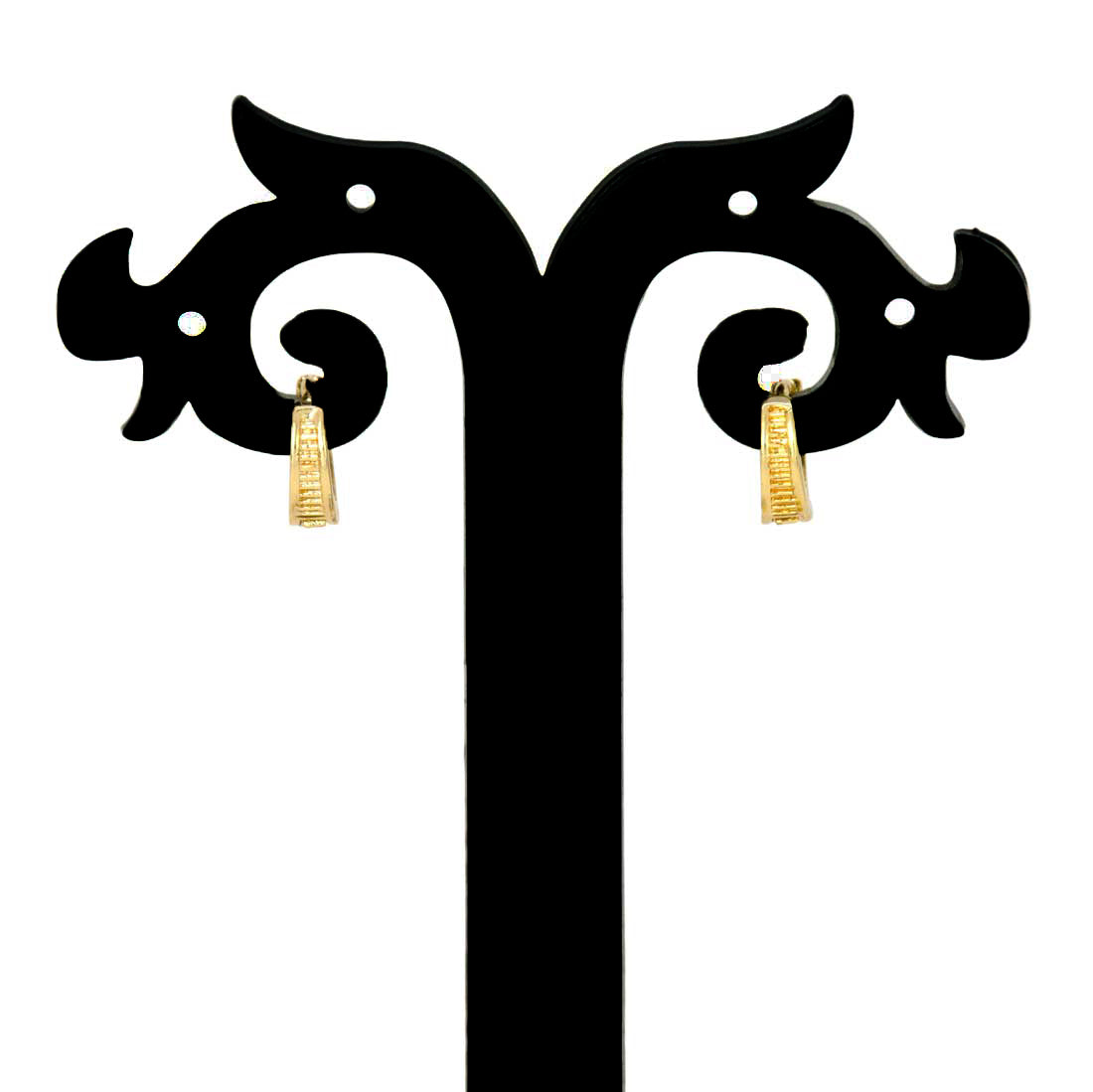 Add effortless elegance to your jewellery collection with these gold-plated textured hoop earrings. Crafted with a smooth, polished base and fine-textured detailing, these hoops offer a perfect balance of classic charm and modern style. Their subtle shine makes them ideal for everyday wear while still standing out on special occasions.