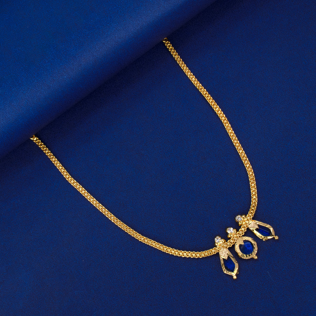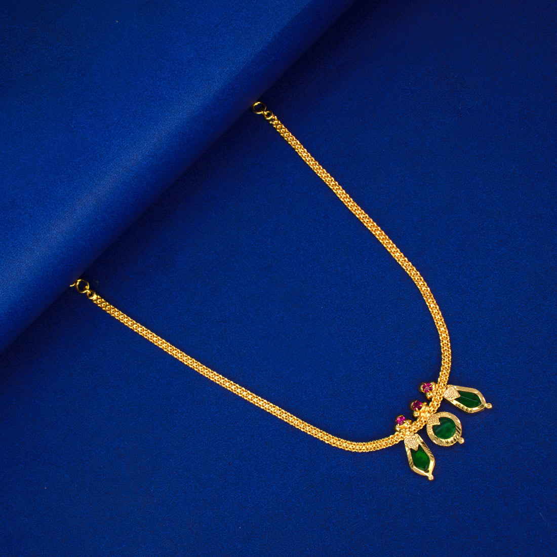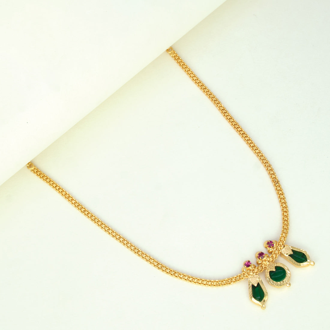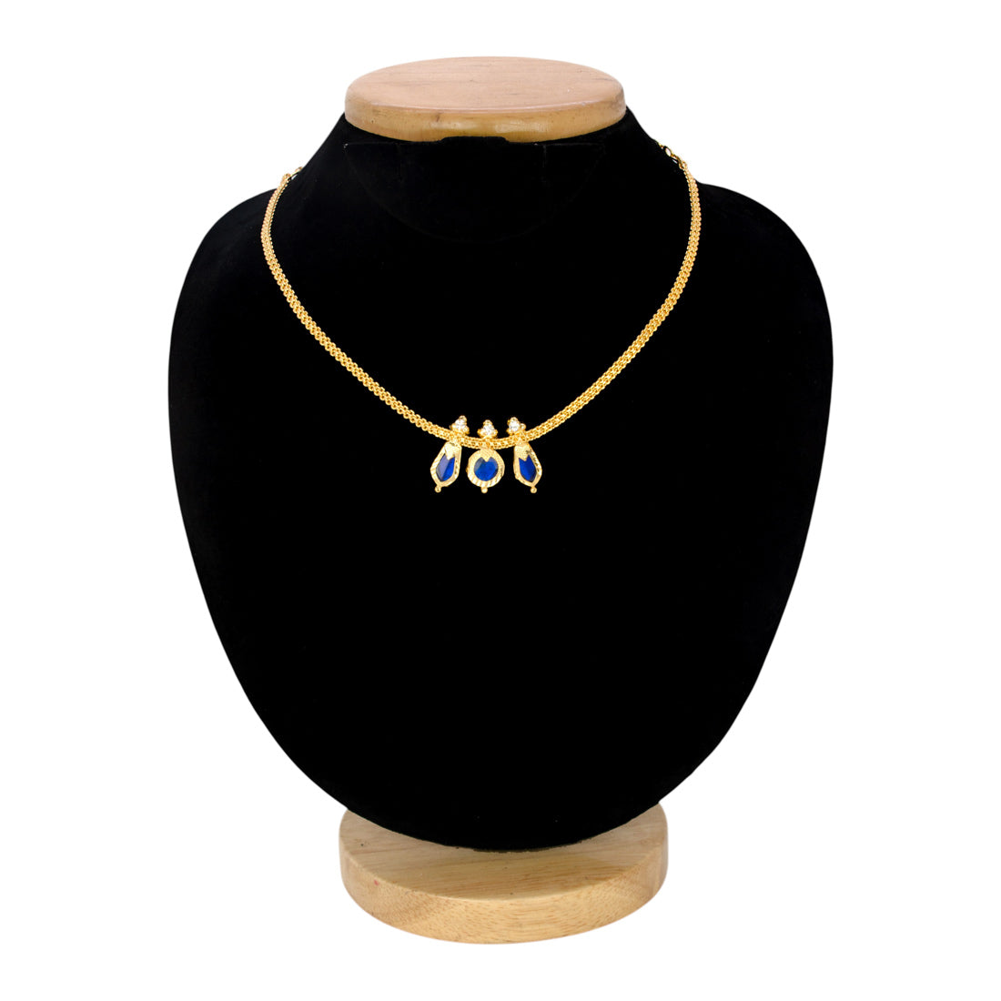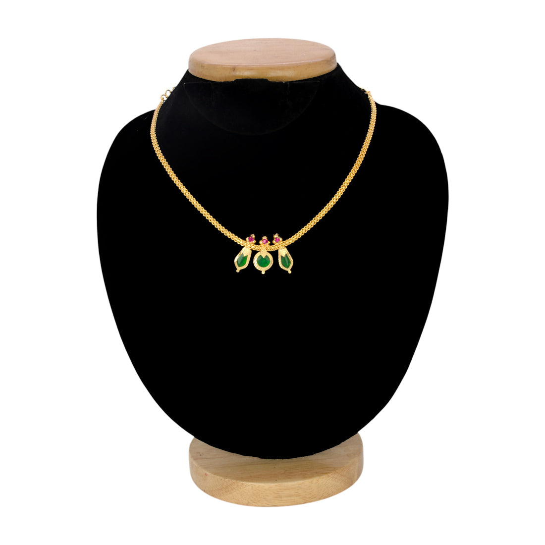 Simple Three-Petal Gold-Plated Nagapadam Necklace adorned with Ruby/CZ stones in green and blue variants. A perfect blend of elegance and culture. Pair it with Sarees or ethnic wear for a classic look.