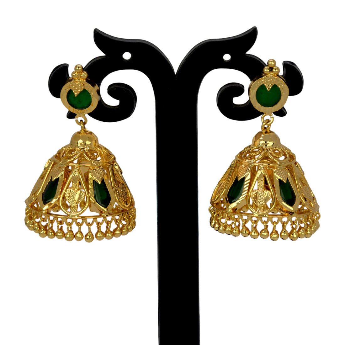 Stylish Kerala Traditional Nagapadam Jhumka Earrings for women. These bridal Jumkies are the epitome of trendy ethnic South Indian bridal jewellery and are an absolute must-have for any traditional occasion. The back of the stud is a screw-type stem, ensuring a secure fit. Pair them with a traditional Nagapadam necklace or Mala to make a grand statement.